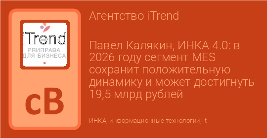 Павел Калякин, ИНКА 4.0: в 2026 году сегмент MES сохранит положительную динамику и может достигнуть 19,5 млрд рублей