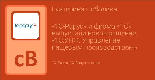 «1С-Рарус» и фирма «1С» выпустили новое решение «1С:УНФ. Управление пищевым производством»